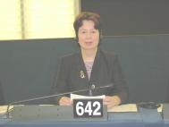 | Diana at her seat in the European Parliament 'hemicycle' |