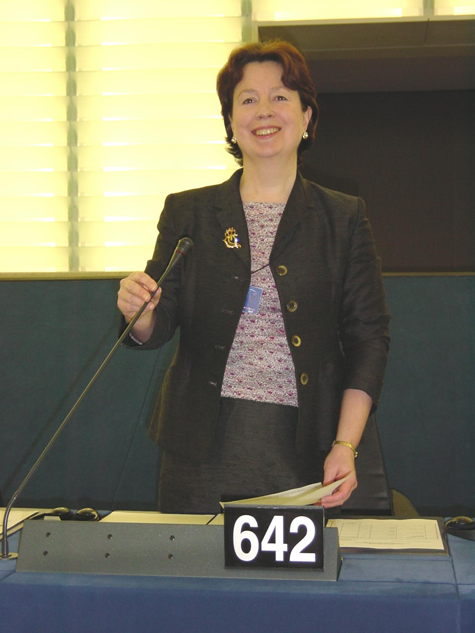 | Diana at her seat in the European Parliament 'hemicycle' |