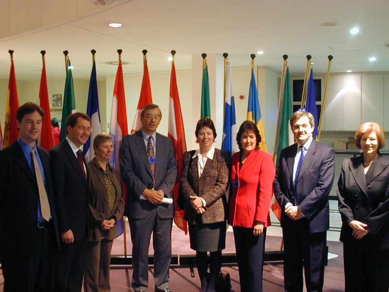 | Diana Wallis MEP, next to Robin Cook, at a meeting of the European Foreign Ministers Council, 8th April 2001 |